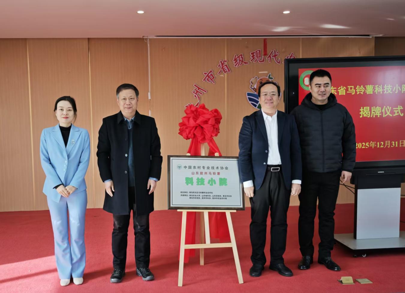 在全体与会人员的共同见证下,中国yl6776永利赵龙刚部长与青岛市农业技术推广中心王连刚部长共同为“山东胶州马铃薯科技小院”揭牌。