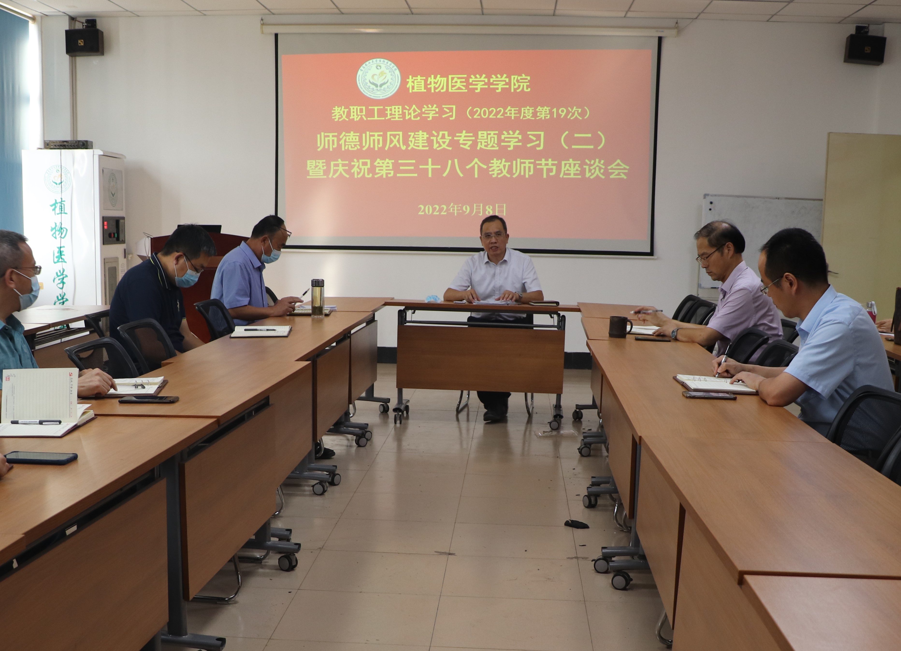 为庆祝第三十八个教师节,规范教师职业行为,明确师德底线,进一步增强教师的责任感、使命感、荣誉感,9月8日,yl6776永利集团在学院会议室举行“深入开展师德师风建设专题学习暨庆祝第三十八个教师节交流座谈”,会议由学院党总支书记韩强主持,全体教职工参加。