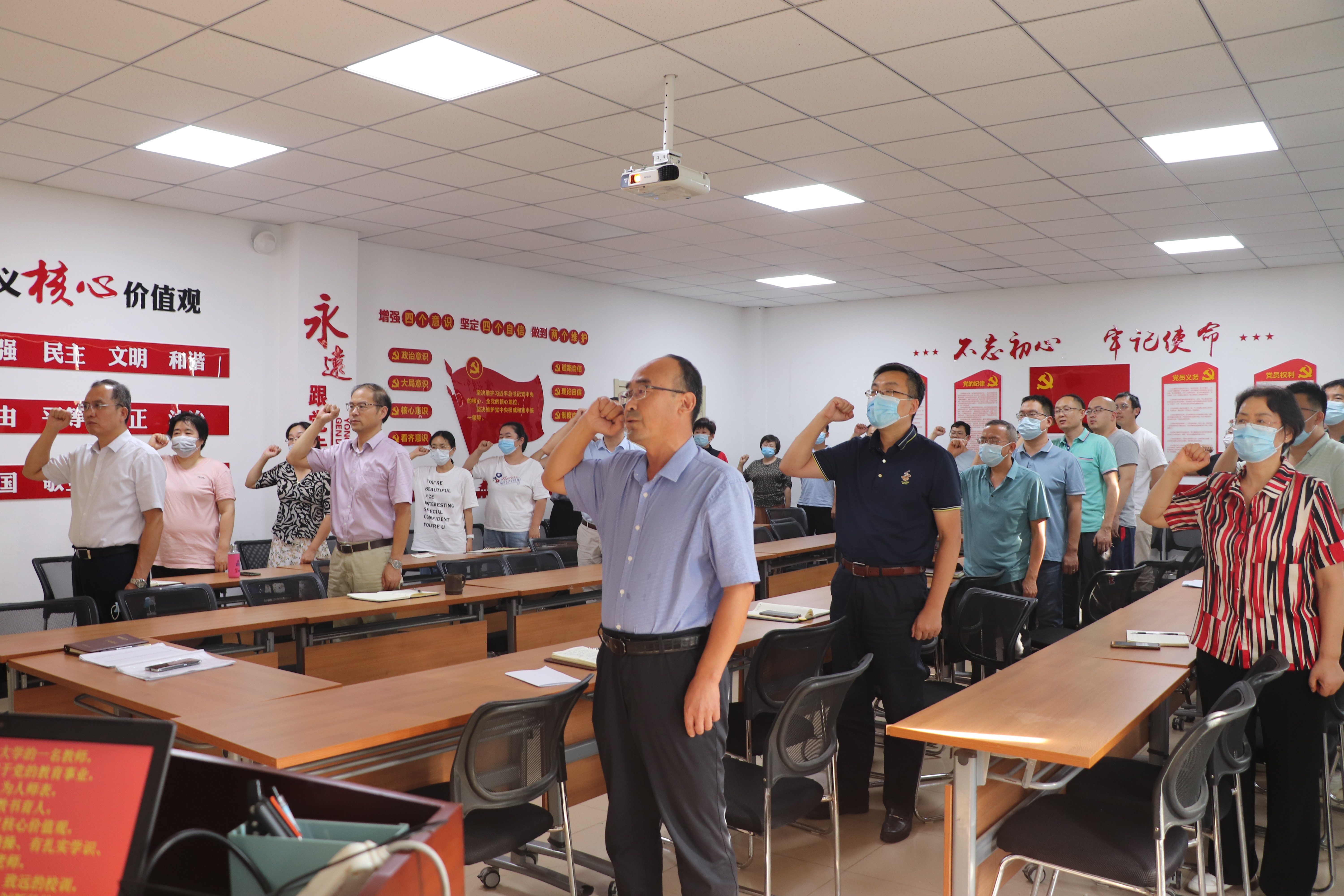 全体教职工在党总支委员、副院长赵洪海带领下庄严宣誓,本次会议圆满结束。
