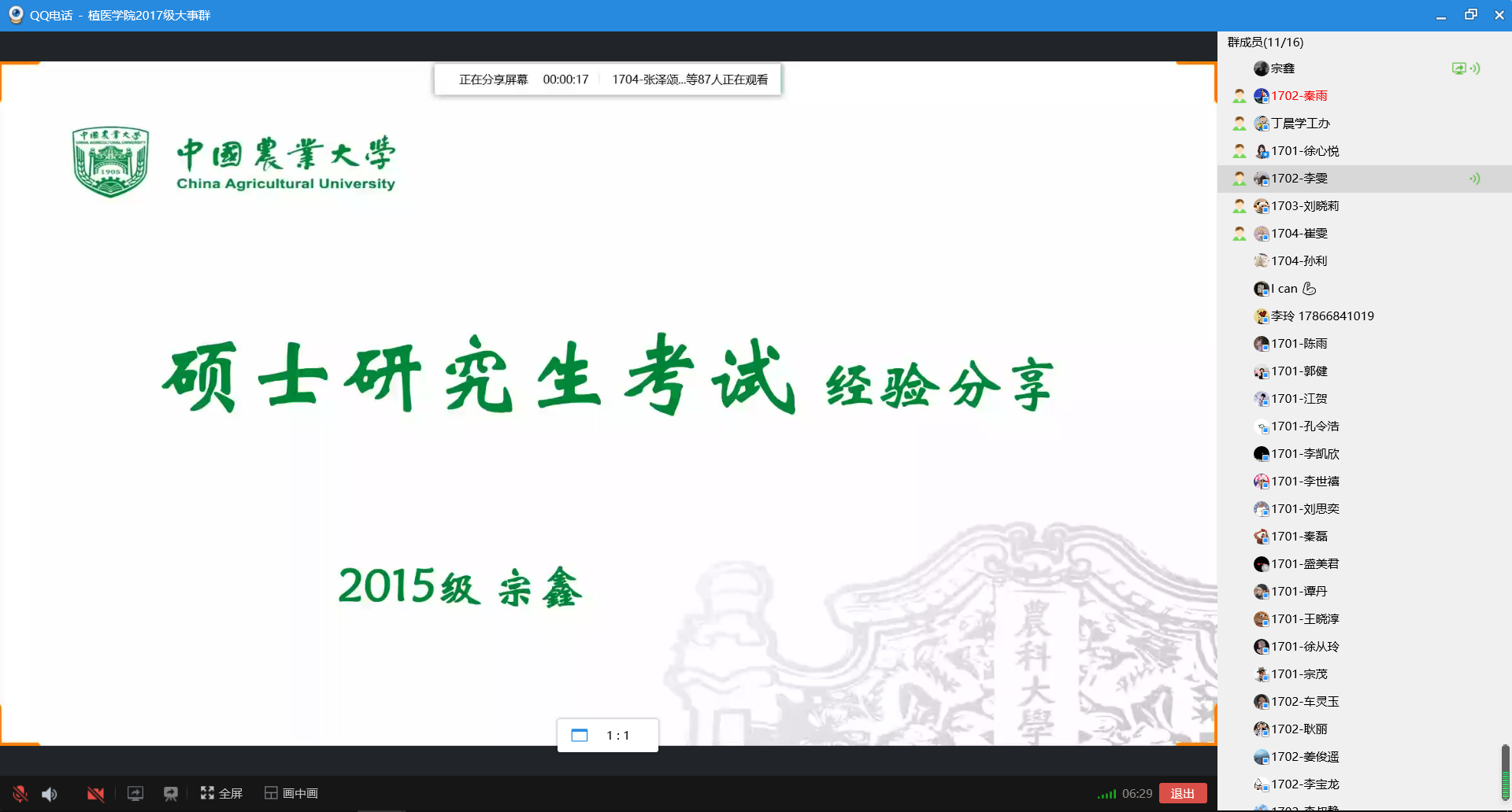 会上,宗鑫、刘晓蓓、张玲玉、王鑫四位优秀毕业生从考研院校选取、复习科目与复习内容、时间安排、考前准备、注意事项等几个方面进行了考研经验分享。